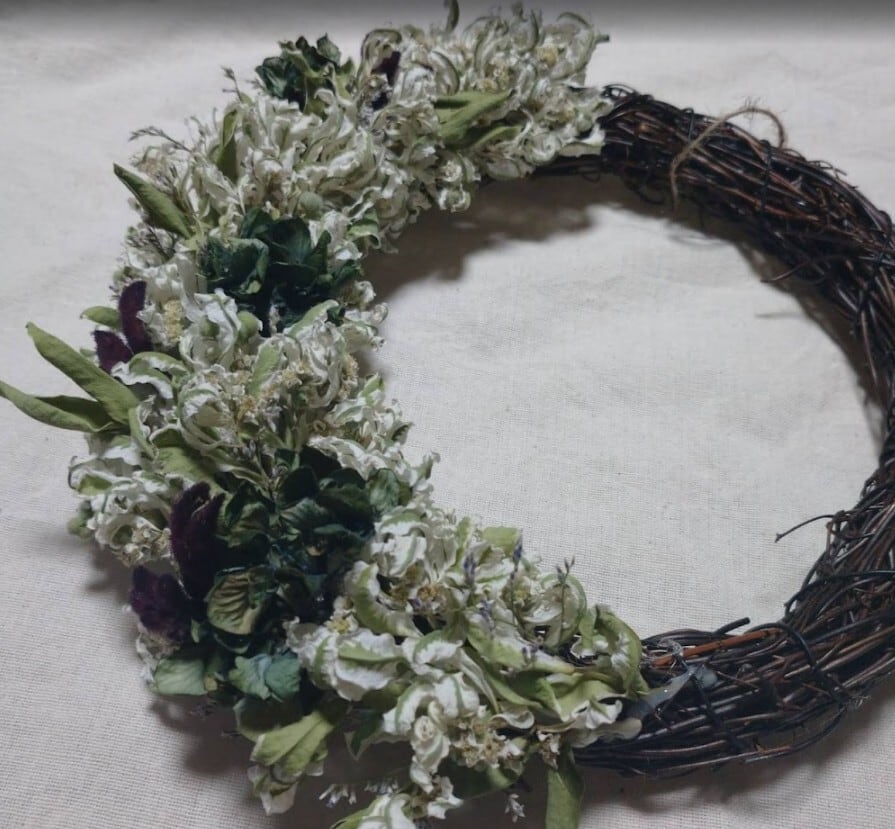 季節ごとの草花を組み合わせて、リースやスワッグ、ミニブーケなどを制作します。